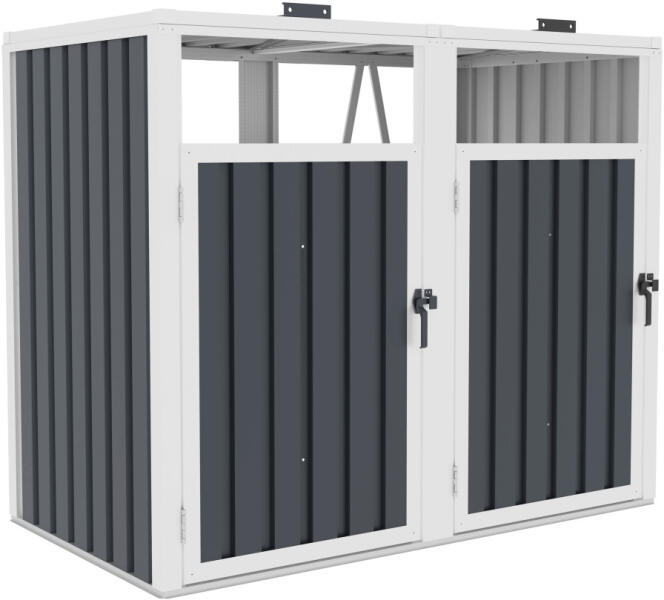 Hozzáférés felülről és elölről A hulladék kényelmes elhelyezése érdekében a tároló felül nyitható . A kuka kivétele egyszerű, mivel az előlap is nyitható. A rendszer biztonsági zárral van ellátva, hogy megakadályozza a véletlenszerű kinyílást. Egyszerű összeszerelés A tárolót részletes összeszerelési útmutatóval és minden szükséges szerelési anyaggal együtt szállítjuk. Az összeszerelés gyors és egyszerű, akár saját kezűleg is elvégezhető. Miért válassza ezt a tárolót? Praktikus és esztétikus megoldást nyújt a hulladéktárolásra, valamint védi a kukák tartalmát az esőtől, széltől és más környezeti hatásoktól . Tartós, könnyen karbantartható és hosszú távon megbízható. Nemcsak praktikus szempontból hasznos, hanem környezetének rendezett megjelenéséhez is hozzájárul. Műszaki adatok