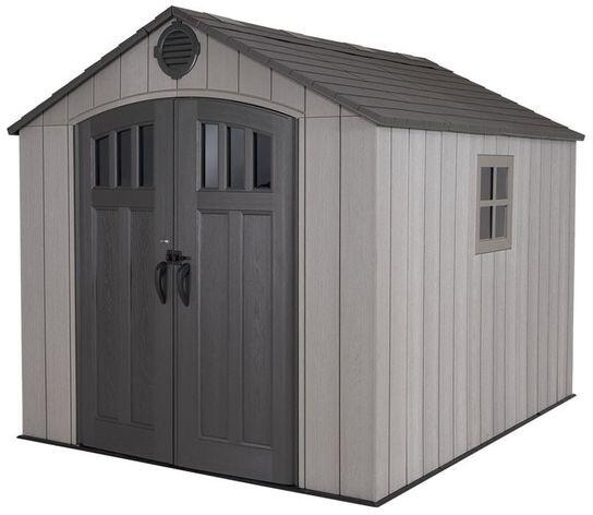 Masszív műanyag kerti ház, mely kényelmes tárolást biztosít minden kertészeti eszköz számára. A rendkívül tartós anyagnak köszönhetően az épület egész évben használható. Méret: sz. 243 × h. 304× m. 243 cm.