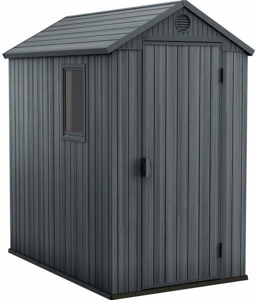 A Darwin 4x6 grafit műanyag kerti ház univerzális és átfogó megoldás a kert számára. A termék 205 cm magas, 126 cm széles és 185 cm mély. A ház belső tere 2,5 m2 hasznos terület, ahol sikeresen tárolhat kerti szerszámokat, fűnyírót, játékokat és bútorokat is.